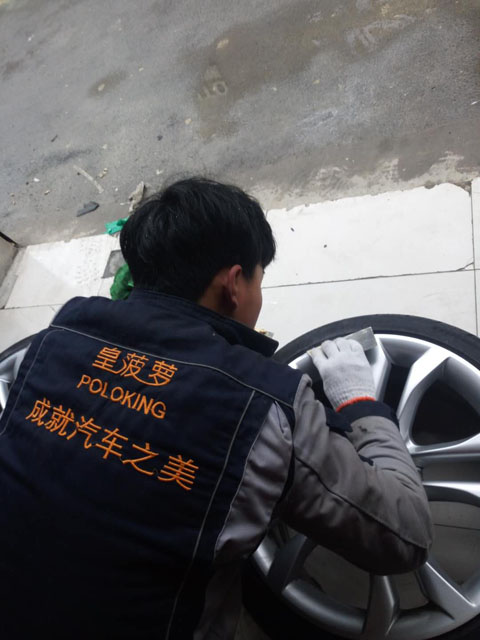 修復(fù)輪轂受損部位:先修復(fù)輪轂輕微劃傷部位,用砂紙或者拋光機對輪轂劃痕處進行平整修復(fù),如果輪轂劃痕有一定深度,簡單的拋光打磨處理并不能消除的輪轂劃痕,就需要利用膩子進行填充處理。